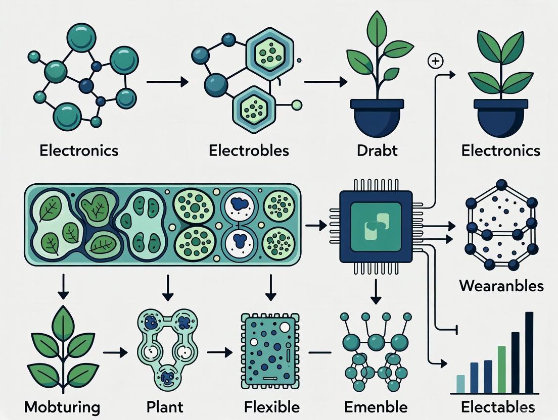 The advancement of plant wearables research is intrinsically linked to innovations in flexible electronic materials. Carbon-based nanomaterials provide the performance needed for sophisticated sensing, conductive polymers offer mechanical compatibility with biological tissues, and emerging eco-friendly ferroelectrics and composites address the critical need for sustainable electronics. As these material classes continue to mature, we anticipate increased integration of multifunctional sensing systems capable of simultaneously monitoring physical, chemical, and electrophysiological parameters in plants [9]. Future research directions will likely focus on enhancing material biodegradability while maintaining performance, developing energy-autonomous systems through integrated energy harvesting, and creating fully printable manufacturing processes that enable low-cost, large-scale deployment of plant wearables in precision agriculture and ecological research [13] [14] [2]. The convergence of these material innovations positions flexible electronics as a transformative technology for understanding and optimizing plant health in an increasingly challenging global environment.